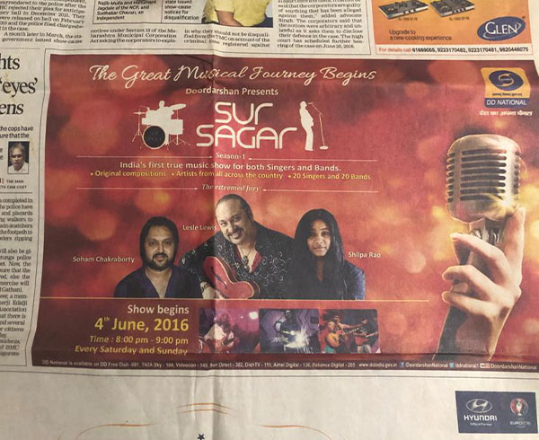 "Sur Sagar" is a singing talent show that was aired on Doordarshan National (DD1).